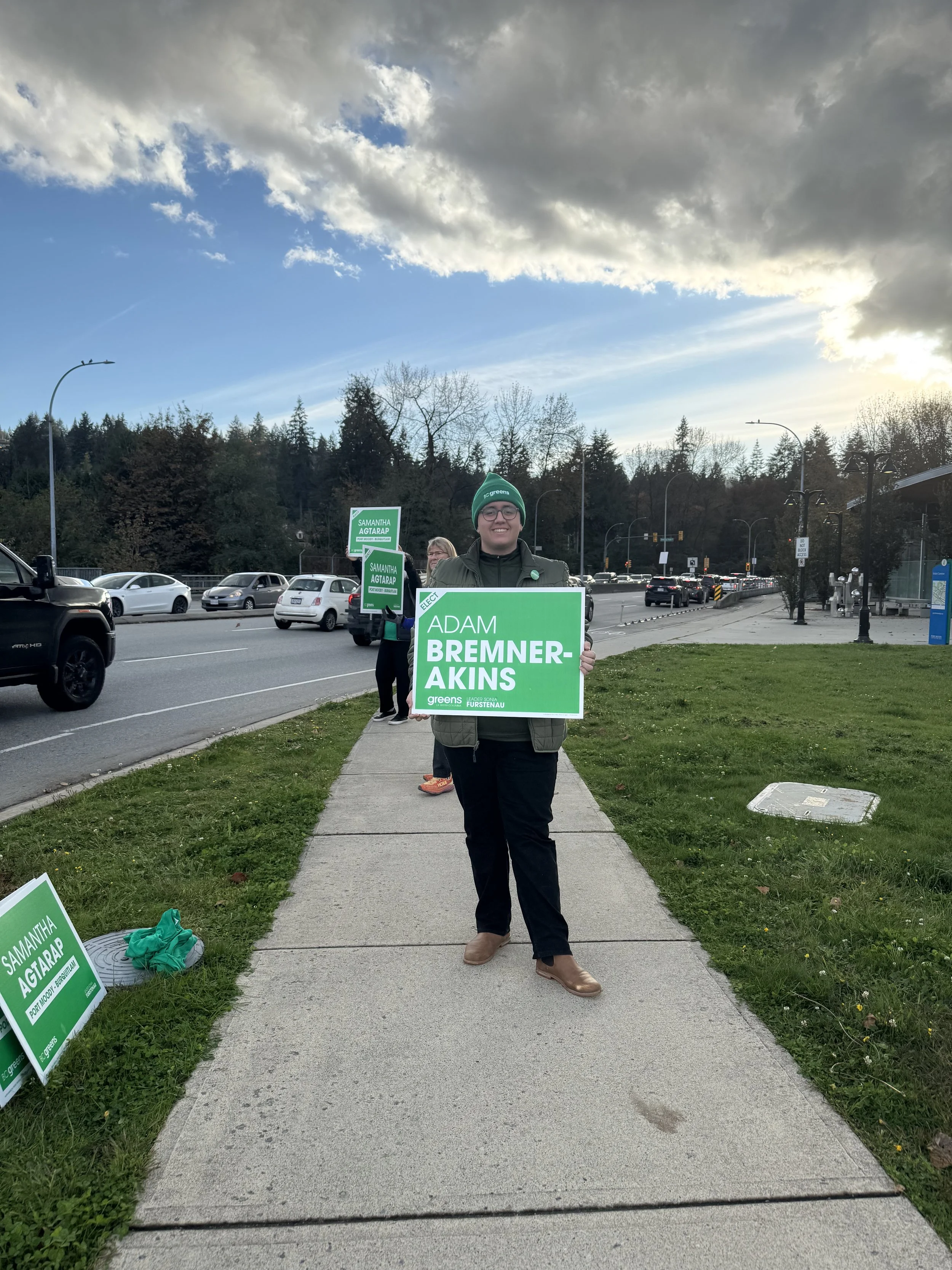 Adam’s political roots began when he joined his parents on the teachers’ picket line in 2014 and grew through organizing his community’s first climate strikes. He’s volunteered across BC, run as a Green candidate in 2020 & 2024, and served four years on the Provincial Council as an At-Large-Member and the Secretary.